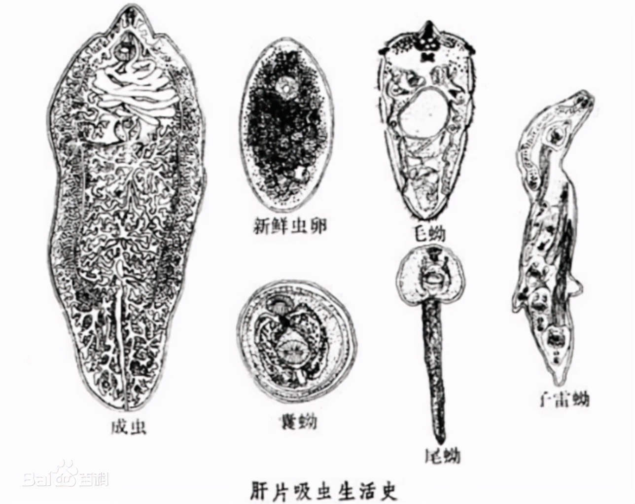 肝片形吸虫的囊蚴具备感染性,囊蚴主要寄生在水草等水生植物上,被宿主吞食后,穿过肠壁、腹腔后进入肝脏或胆道,整个过程需要10~15周。